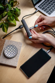The Newell 6-in-1 Hub will easily fit into your backpack or laptop bag. The device is made of durable aluminum alloy for durability and ultralight weight. With its graphite finish and streamlined shape, the hub fits perfectly into contemporary standards of minimalist design.