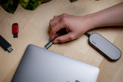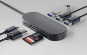 The Newell 7-in-1 hub will easily fit into a backpack or laptop bag. The device is made of durable aluminum alloy for durability and ultralight weight. With its graphite finish and streamlined shape, the hub fits perfectly into contemporary standards of minimalist design.