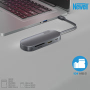 With the Newell 7-in-1 splitter, you can easily connect an HDMI-compatible monitor to a device that only has USB-C ports. The hub supports audio and video transfer in excellent 4K quality. Backward compatibility will, of course, also allow you to work with those monitors that offer lower display resolutions.