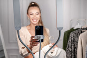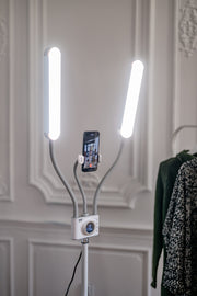The Newell Isztar LED light is everything you need to create professional video content without having to reach for additional tools and accessories. All you need is your smartphone! With two lamps on flexible arms that can be adjusted to almost any angle, you'll get perfect, even illumination of your face. A phone holder is placed between them to ensure comfortable and stable recording. Whether you're standing or sitting, the tripod will allow you to precisely position your frame. With this set, you can precisely illuminate your shots, adjust the type of light to suit your shots and create even better video content.