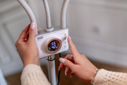 Newell Isztar LED lamp is equipped with a modern control panel and backlit HD display. The device allows you to easily manage the light with a single touch. You can precisely adjust the color temperature from 3200 K to 5600 K, as well as the brightness - from 0 to 100%. If necessary, you can change the mode with one button, choosing whether you want to use one or two panels.