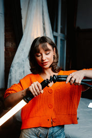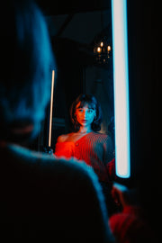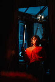 Acclaimed in the world of filmmakers and photographers, the Newell RGB Kathi lightsaber has received a new iteration in the Pro variant. The lamp is 9 centimetres longer than its big sister and offers even more versatility when working creatively with light. The elongated shape, the lightweight and robust aluminium housing, the comfortable handle, the support of a mobile app and the possibility to install it on a tripod with a 1/4" thread are all features that will help you create unique atmospheres with the colour spectrum available within the HSI colour space.