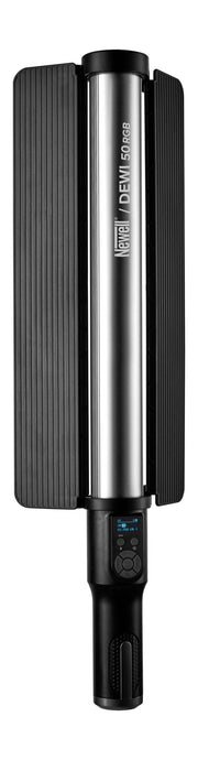 The Newell RGB LED Dewi 50 is a versatile tool designed for creatives who need a compact and portable light source. The elongated 60 cm long design with a single-sided panel and handle allows for comfortable âhands-onâ work. The removable gates allow even better light direction. With its wide range of colour temperature adjustment, green/magenta correction function and high CRI value (⥠97), the Dewi 50 provides faithful colour reproduction and allows a wide variety of light setups. 20 special effects, support for the HSI mode with full colour range and collaboration with the Linklite app add even more possibilities. Power and charging via USB-C or the included power supply allows the lamp to be used in the studio and in the field. Main product features light sword-shaped LED lamp with a length of 60 cm ergonomic handle for comfortable âhandheldâ operation detachable gates included - allow control of light direction and angle high CRI value (⥠97) to guarantee natural colour reproduction possibility to change the colour of the light in HSI mode (0° - 360°) wide range of colour temperature adjustment - from 2700 K to 10000 K 20 predefined light effects (12 in CCT mode and 8 in HSI mode) special effects allow various natural and artificial light sources to be simulated (e.g. flame, TV, fireworks, disco) green/magenta correction function for precise colour matching power supply via 12 V DC power supply Power supply via DC 12 V 4 A power supply or USB-C port with PD 3.0 support and maximum power of 15 W possibility to work in the field with a powerbank up to 60 m remote control range (free iOS/Android smartphone app) 4400 mAh battery capacity for long operating time information screen with brightness level, saturation and colour temperature, as well as charge level convenient push-button operation robust construction and ergonomic design solid construction and ergonomic design 40-month manufacturer's warranty Ideal for photographers and video makers The Newell RGB LED Dewi 50 lamp, with its distinctive lightsaber shape and 60 cm length, will open up completely new creative possibilities. The light panel allows you to direct the light precisely, making it the ideal tool for painting with light, creating dynamic effects in motion or highlighting details on set. The ergonomic handle allows you to work comfortably âhand-held,â giving you full freedom to shape the atmosphere during photo and video shoots. The Dewi 50 will be appreciated by filmmakers, photographers and web developers who are looking for a mobile and versatile solution for creating striking, creative shots. It is suitable for portraits, where it will allow light modelling, as well as for action scenes, where it will add dynamism and intensity to the shot. 50 watts maximum power The maximum power mode of the Newell RGB LED Dewi 50 is a real ace up the sleeve of creators who sometimes need to "spice up" a scene with even stronger light. It allows the unit to reach as much as 50 W of power at colour temperatures from 4500K to 7500K. This is ideal for situations that require exceptional brightness, such as photo shoots or film shoots with multiple light sources. The mode is also available for HSI, where we can use the maximum power of the colour light. In standard mode, power consumption is reduced to 30 W, allowing you to save energy when the full brightness of the lamp is not needed. Magic of colours With the Newell RGB Dewi 50 LED lamp, you can define the colour of the light in the full range of 0°-360°, as well as adjusting its saturation and brightness from 0% to 100%. In this way, you can create exactly the atmosphere your photo-video project requires. Use the potential of the Dewi 50 to create colourful compositions that will catch the eye and excite your viewers and observers. Precise light direction The Newell RGB LED Dewi 50 is equipped with compact removable gates. These allow you to precisely control the direction and angle of the light, which is extremely useful when creating more complex light compositions. The gates allow you to focus the beam exactly where you need it, minimising scatter and eliminating unwanted reflections. This is ideal when you want to create focused, dramatic lighting or highlight specific elements of a scene. The removable gates make the Newell Dewi 50 an even more versatile tool, adapting to your individual needs. Adjustable colour temperature The Newell RGB LED Dewi 50 offers a wide range of colour temperature adjustment - from 2700 K to 10000 K. This allows you to perfectly adjust the lighting for different conditions and effects. Whether you want to create a warm, cosy mood or achieve cold, professional light for product shots, the Dewi 50 is a guarantee of complete control. With this lamp, you can accurately reproduce natural lighting, adapting to changing daylight or creating unique, creative compositions. By adjusting the colour temperature, you can give each scene exactly the character you have planned and make your photos and videos look more professional and consistent. 20 special effects The Newell RGB LED Dewi 50 lamp offers up to 20 special effects. You can choose from 12 simulations in CCT mode, such as lightning, TV or flame. However, that's not all. In HSI mode you will find 8 more effects. These use colours so that you can simulate police roosters, fireworks or a disco, among other things. The ability to adjust the brightness and speed of the effects gives you full control over the lighting, allowing you to experiment freely and build the mood. 2 power ways The Newell RGB Dewi 50 LED light provides a great deal of flexibility thanks to its two independent power supply options. You can connect it to a power supply (included), which is ideal in the studio or anywhere you have access to an electrical outlet. Alternatively, the lamp supports power via a USB-C port with Power Delivery 3.0 support and a maximum output of 15W. This solution will allow you to work in the field