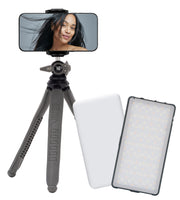- A versatile 3-in-1 kit: RGB-W LED lamp, diffuser and flexible tripod