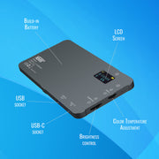 - Compact lamp dimensions comparable to a smartphone (fits in your pocket)